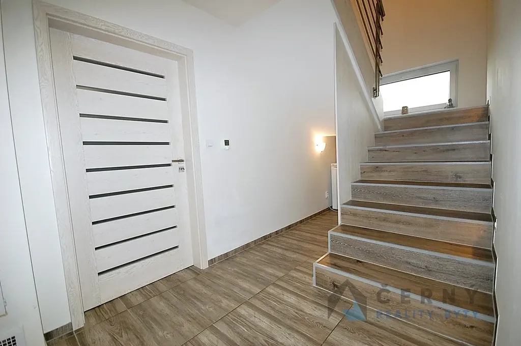 V přízemí objektu se nachází vstupní předsíň, velmi prostorný obývací pokoj s kuchyňským koutem a výstupem na zahradu, pokoj pro hosty, koupelna se sprchovým koutem, samostatné WC a technická místnost. Moderní kuchyňská linka je kompletně vybavena spotřebiči včetně lednice a myčky nádobí. Ve druhém nadzemním podlaží jsou umístěny tři ložnice, prostorná koupelna s vanou a samostatná toaleta. Z chodby v patře je po výklopném schodišti přístup do velkého úložného půdního prostoru.