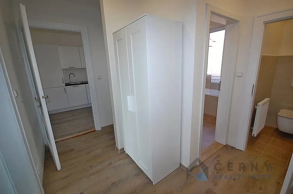 Byt o výměře 83 m2 prošel v nedávné době kompletní rekonstrukcí. Okna bytu jsou plastová, podlahové povrchy tvoří parkety, plovoucí podlaha, vinyl a koberce, v koupelně a na WC je položena dlažba. Vstupní místností bytu je předsíň, ze které se vchází do obývacího pokoje kuchyně a koupelny. Kuchyň je osazena novou, moderní kuchyňskou linkou zhotovenou na míru a kompletně vybavenou vestavnými spotřebiči - horkovzdušná trouba, sklokeramická varná deska, digestoř, lednice s mrazákem, a myčka nádobí. Koupelna je díky velkému oknu světlá a vzdušná. Vybavena je vanou se sprchovou zástěnou a koupelnovým nábytkem s prostorem pro pračku, která je rovněž součástí vybavení. Toaleta je samostatná, s vlastním umyvadlem. Pokoje bytu jsou příjemně prosvětlené a prostorné.