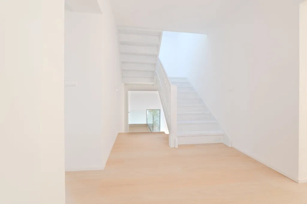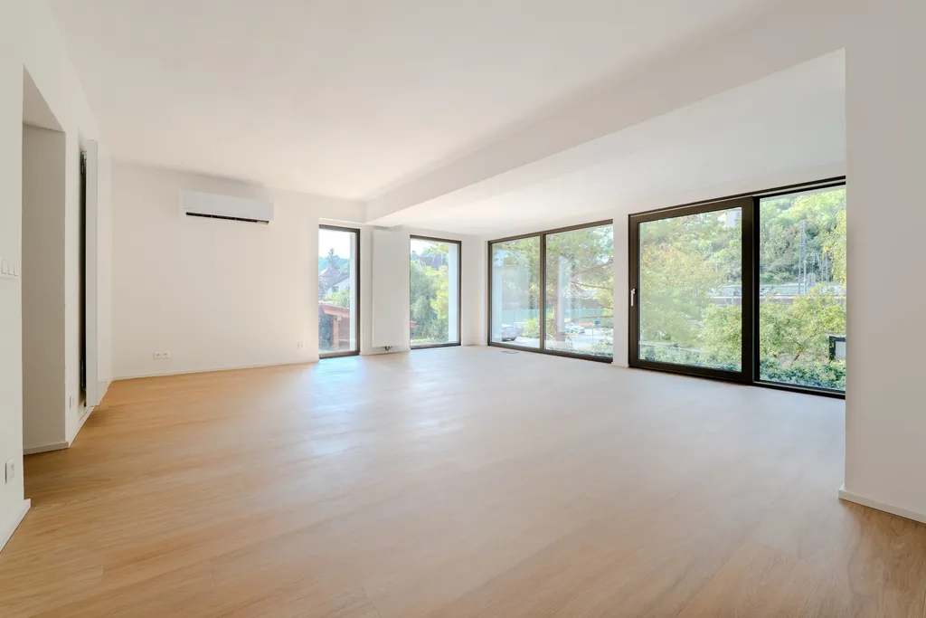 Standard zahrnuje plastová okna s trojskly, přípravu na venkovní žaluzie, elektrické podlahové vytápění v koupelnách s termostaty ABB, velkoformátové obklady a kvalitní sanitární vybavení.