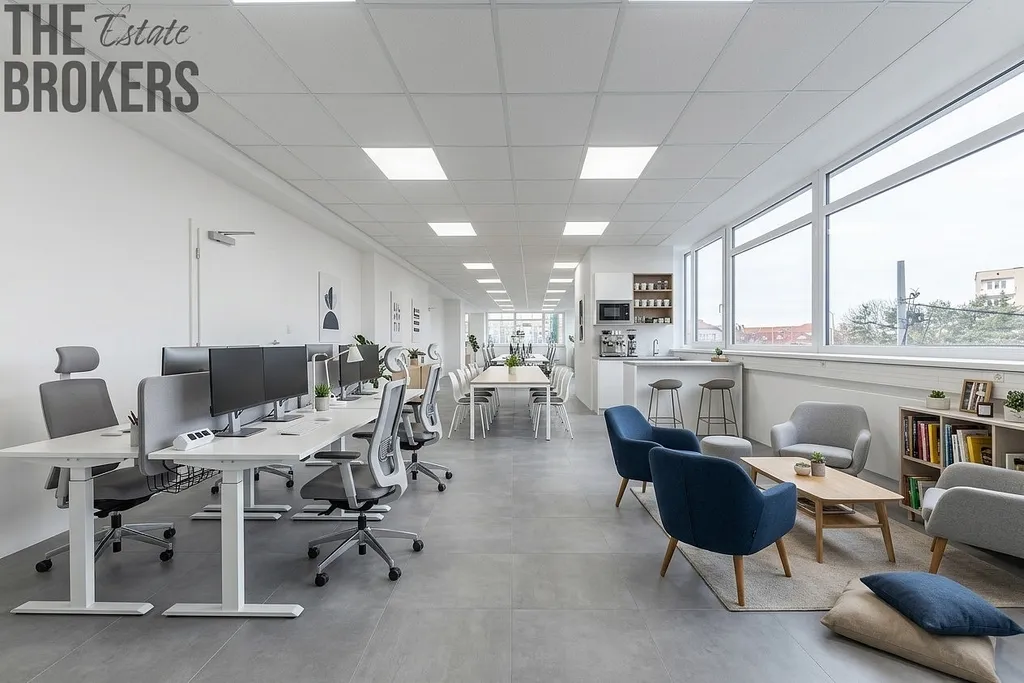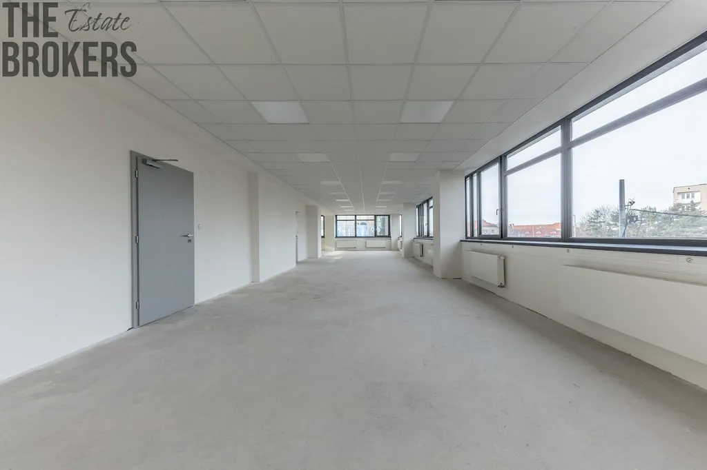 Exkluzivně nabízíme k pronájmu kancelářský prostor o celkové výměře 375 m² ve 2. nadzemním podlaží budovy ( 1. patro) na adrese Průběžná 76, Praha 10 – Strašnice. Hlavní část patra tvoří otevřený prostor o velikosti 347,35 m², který je možné upravit jako open space nebo rozčlenit na menší kanceláře a zasedací místnosti podle požadavků nájemce. Součástí zázemí jsou předsíň a WC pro ženy (3,48 m² + 6,19 m²), předsíň a WC pro muže (3,45 m² + 9,18 m²), technická místnost (2,44 m²), úklidová místnost (2,85 m²), m²). Patro je připraveno pro vedení datových rozvodů v podhledech, nabízí možnost instalace klimatizace, disponuje rozvody vody a kanalizace, ústředním vytápěním radiátory, silnoproudem i slaboproudem a napojením na vzduchotechnické trasy. Podlahy jsou betonové v hlavním open space a keramické v sociálním zázemí; stěny tvoří sádrové omítky a stropy kazetové SDK podhledy. Standardní výška stropu je přibližně 2,6 m. Prostor je přístupný výtahem i schodištěm a je vhodný pro dlouhodobé administrativní nebo kombinované využití díky dobré dostupnosti MHD, napojení na hlavní pražské tahy a občanské vybavenosti v bezprostředním okolí. V domě máme další dvě patra o stejné rozloze k pronájmu. Preferujeme dlouhodobé nájemce. V domě je recepce a čekací hala pro hosty. Vstup bude zajištěn přes čipové karty.