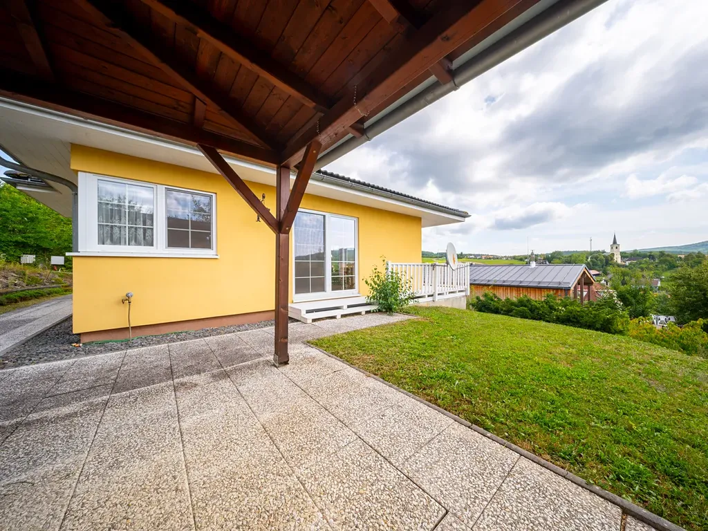 Na krásném a klidném místě s nádherným výhledem. Obývací pokoj s krbovými kamny. Podlahové topení. Ideální velikost pozemku. Hned vedle lázní Luhačovice.