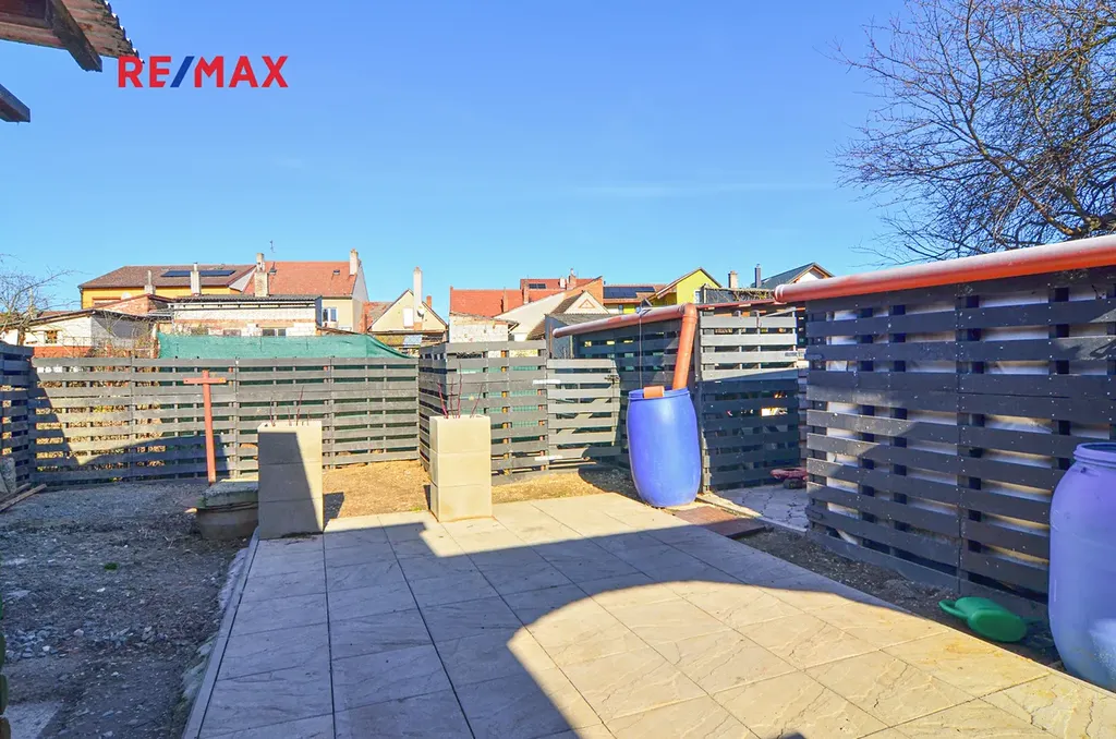 K domu náleží vydlážděný dvůr a menší zahrada, které poskytují dostatek soukromí a prostoru k odpočinku.