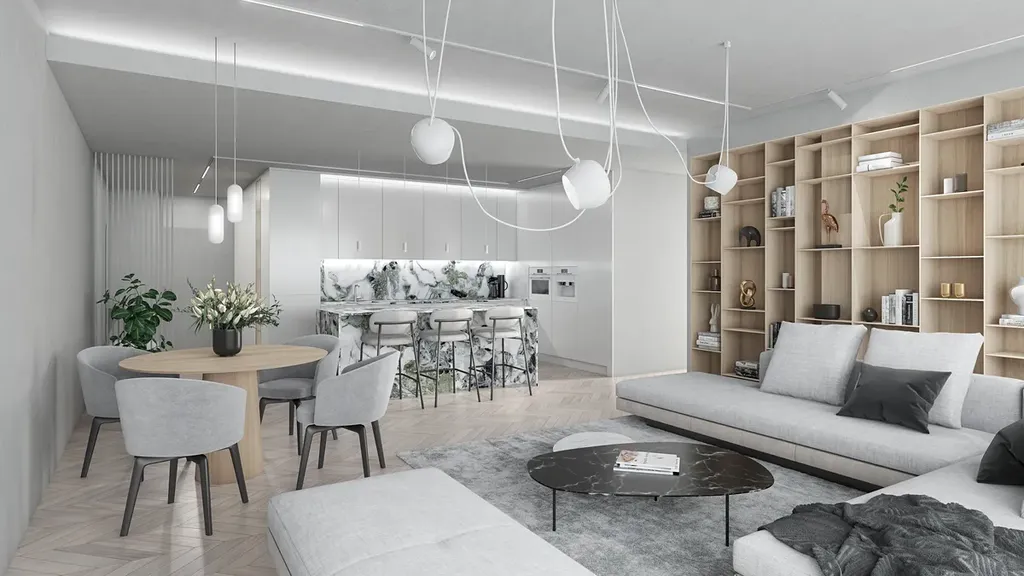 Byt je aktuálně Shell and Core - interiér si můžete doladit podle vlastních představ a vkusu.