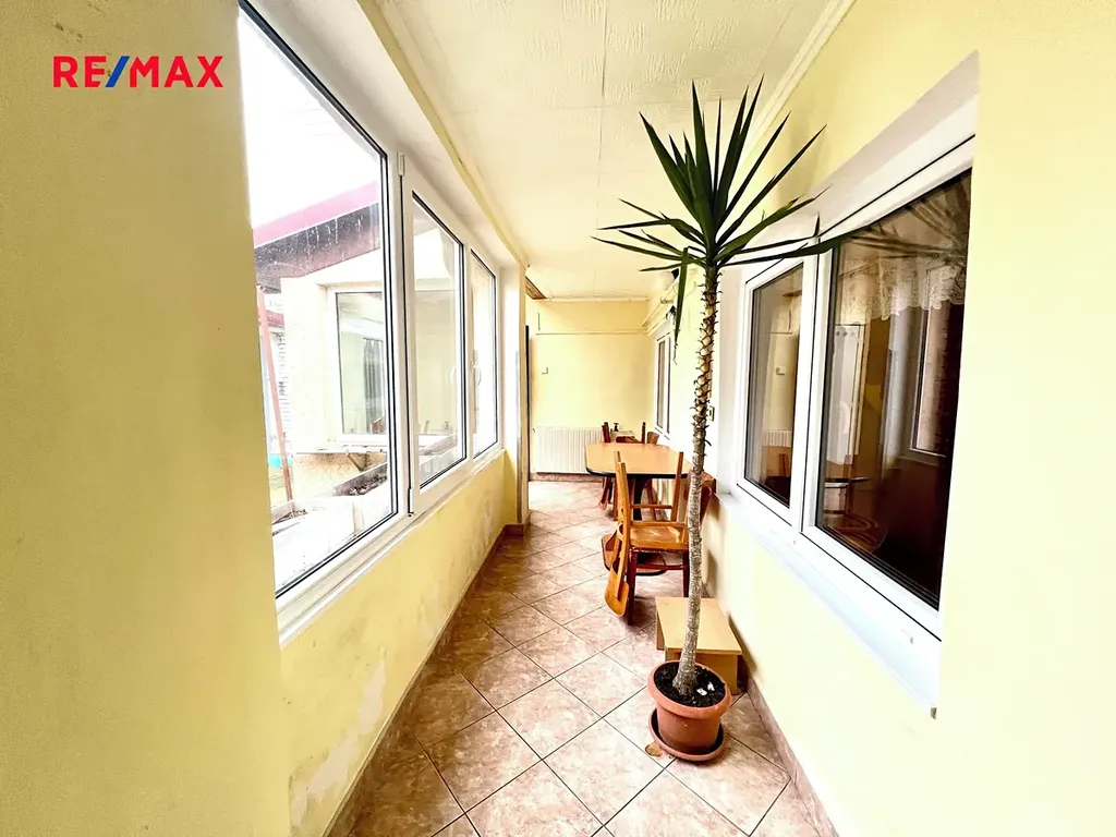 V zadní části domu je velká světlá veranda, ze které se pokračuje do přístavků na dvůr.