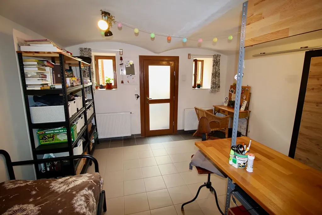 Exkluzivně nabízíme byt v osobním vlastnictví o dispozici 1+kk a ploše 28 m2 v cihlovém domě se zahradou v Praze 5 Hlubočepích v těsné blízkosti Prokopského údolí a zastávky autobusu a vlaku Nádraží Hlubočepy. Jedná se o developerský projekt s názvem Bytový dům Pod Žvahovem, kdy došlo ke kompletní rekonstrukci původní stavby a jejímu rozdělení na devět bytových jednotek. K domu patří vlastní pozemek se soukromou zahradou. V bytě je pokoj s kuchyňským koutem, koupelna se sprchou, umyvadlem a pračkou, komora, samostatná toaleta a vstupní zastřešená veranda. Byt se nachází v polosuterénu a má celkem čtyři okna, která vedou do zahrady. Jedná se o ateliér, který je užíván k bydlení, ale v katastru je veden jako nebytová jednotka. Při financování hypotečním úvěrem proto doporučujeme zástavu jiné nemovitosti. Byt je vhodný jako startovací bydlení pro mladé nebo jako výnosná investice s následným pronájmem.