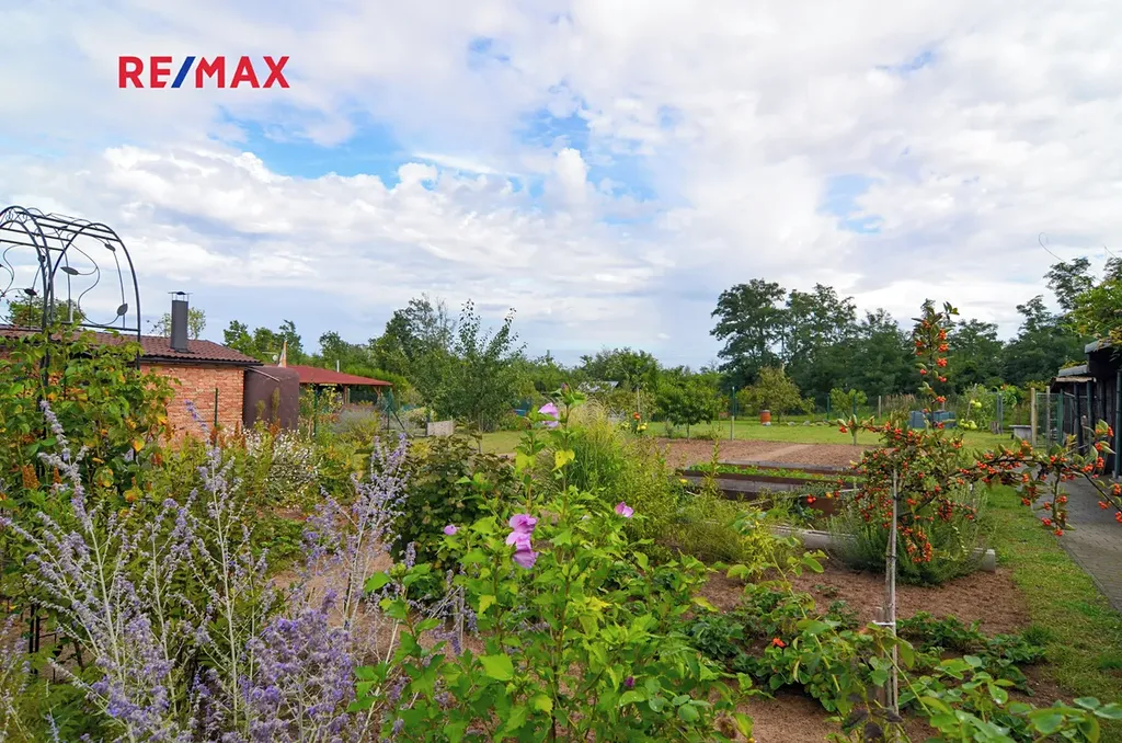 Zahrada plná záhonků čeká na milovníky vlastních výpěstků, ovocné stromky ...jablka, meruňky, blumy...