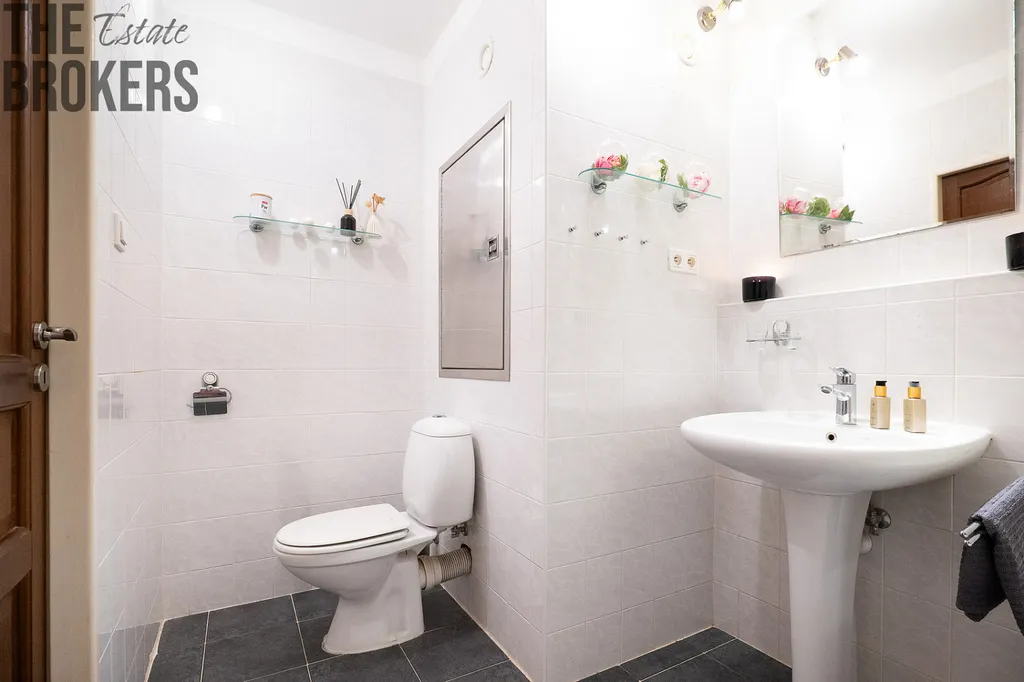 K bytu náleží také sklep (2,5 m²) a k dispozici je i pronájem velké sklepní místnosti (40 m²) aktuálně využívané jako skladový prostor.