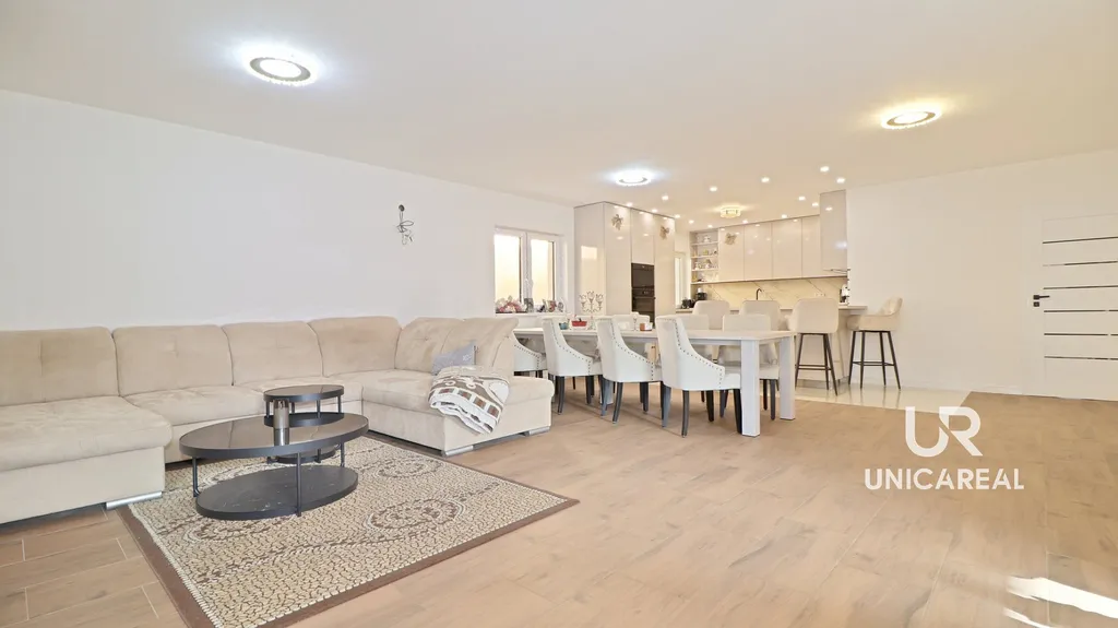 Interiér je již připraven k nastěhování včetně kompletně dokončené kuchyňské linky a k úplnému finále zbývá vydláždění terasy a dokončení fasády vč. úpravy okolí.