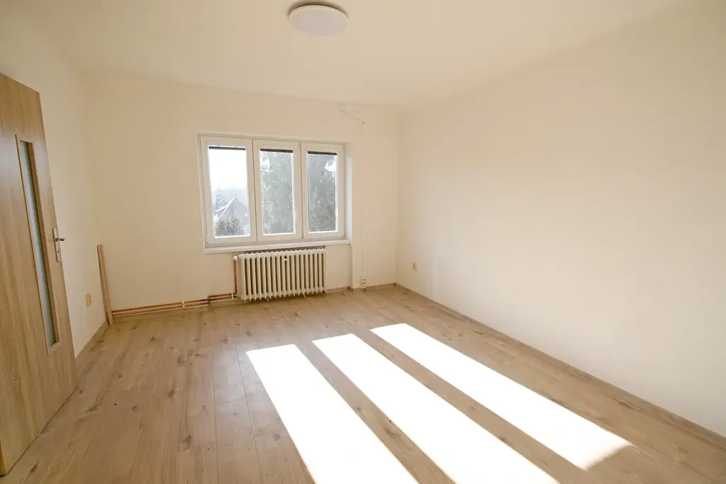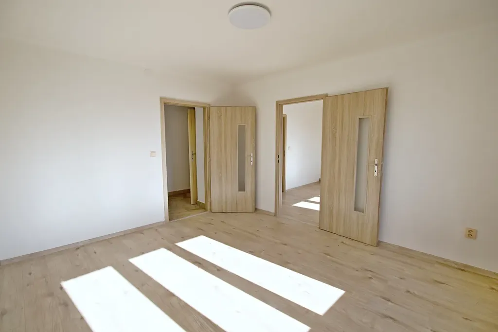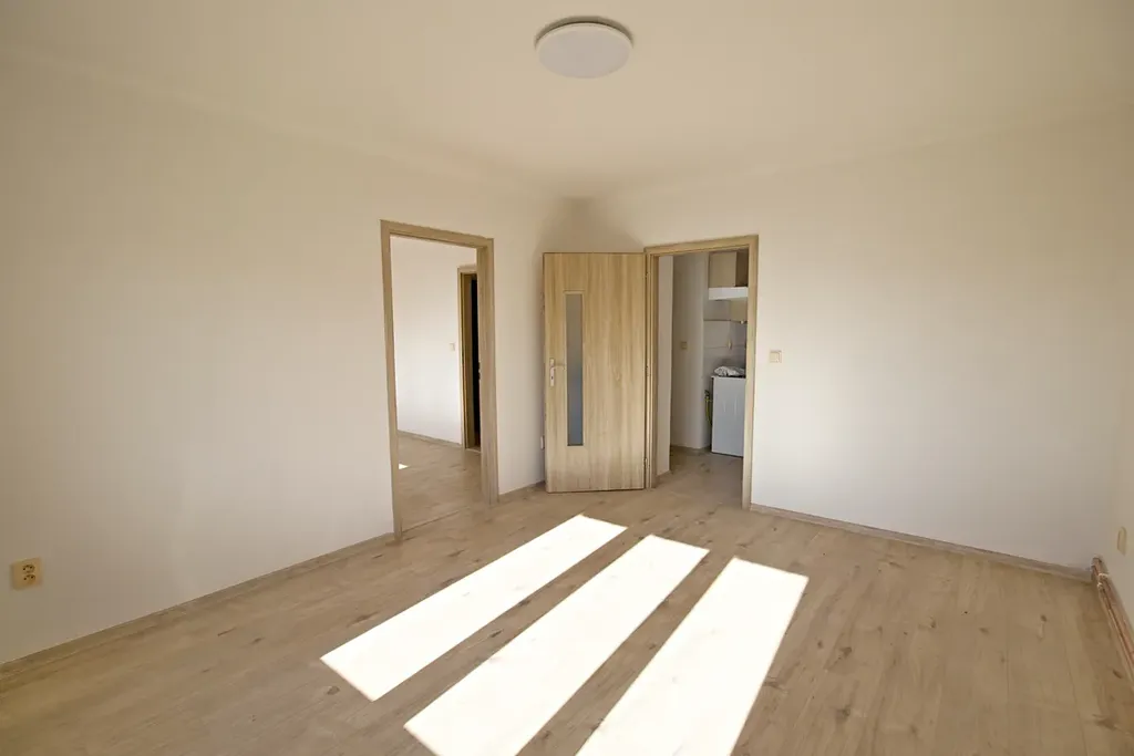 Byt je členěn na chodbu, ze které je vstup do koupelny se sprchovým koutem a WC, nalézá se zde i přípojka na pračku a plynový kotel. Dále kuchyně se spíží a dva pokoje. Vytápění zajišťuje vlastní plynový kotel, který ohřívá i teplou vodu. Na podlaze bytu je položena plovoucí podlaha. Byt je vybaven dle fotografií. Máme zájem o slušné pracující nájemníky bez domácích mazlíčků. Měsíčná nájemní 12.000,-Kč plus zálohy na vodu a energie cca. 4.000,-Kč dle počtu osob. Kauce 22.000,-Kč plus odměna RK ve výši jednoho nájmu.