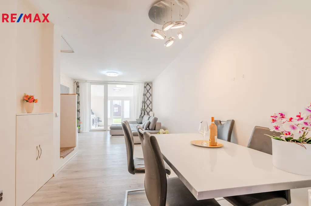 V exkluzivním zastoupení Vám nabízíme třípodlažní řadový dům 4+kk, 115 m² s parkovacím místem a udržovanou zahradou 80 m² v klidné části vyhledávané obce Nupaky, kousek od hranice hlavního města Prahy.