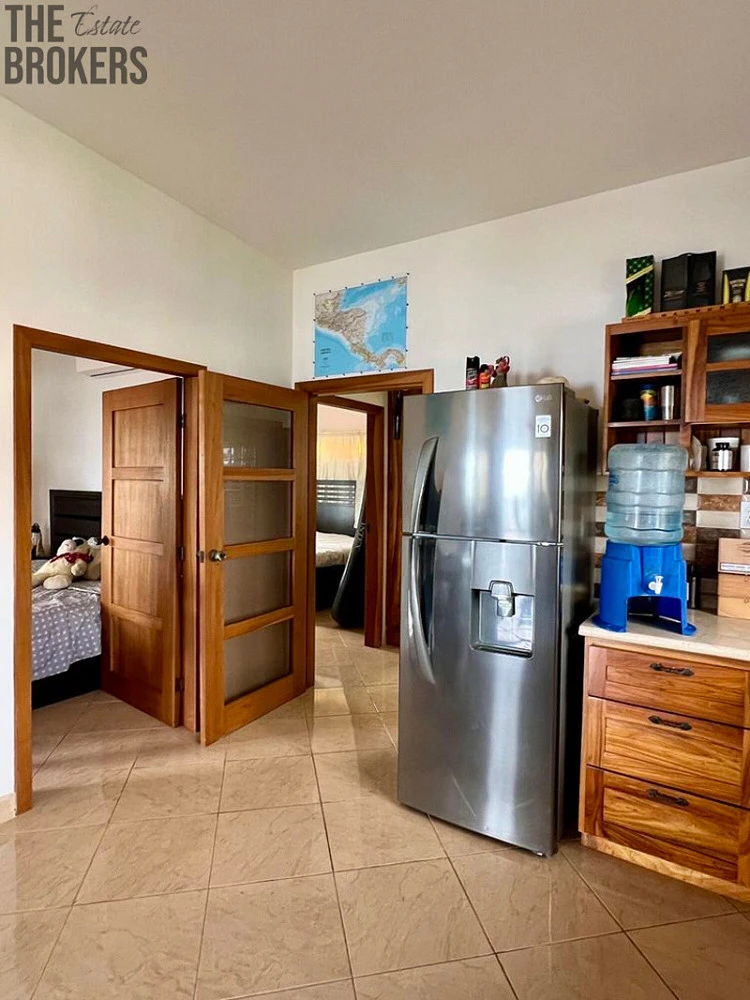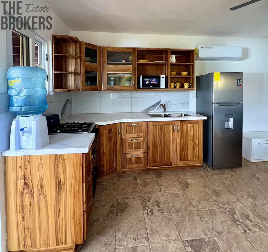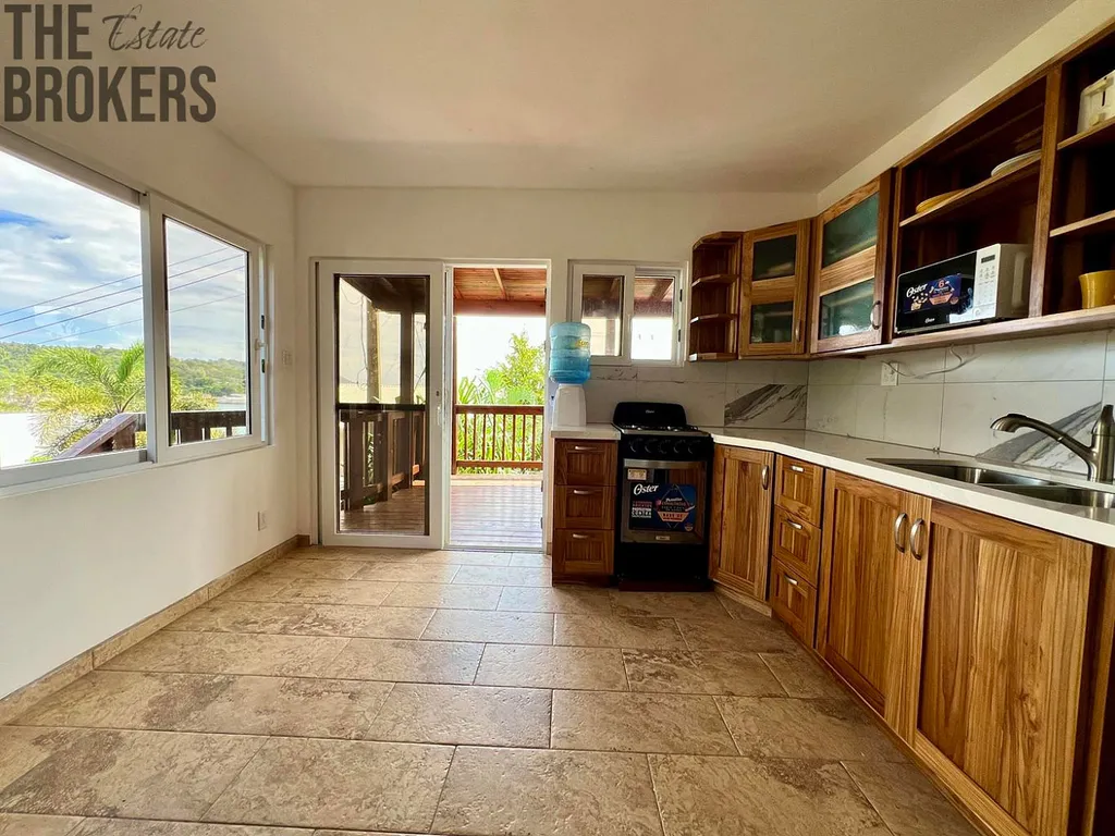 Objevte svůj vysněný domov v úžasné komunitě Czech Village na Roatanu. Tato okouzlující dřevěná dvoupatrová rezidence nabízí jedinečnou kombinaci pohodlí a úchvatného výhledu na Karibské moře. V horním patře je prostorný hlavní obývací prostor se dvěma ložnicemi a dobře vybavenou koupelnou. Z této oblasti se rozprostírá rozlehlá veranda, která poskytuje dokonalé místo pro relaxaci nebo zábavu při panoramatickém výhledu na šumivé Karibské moře. Ve spodním patře najdete útulný apartmán s jednou ložnicí a jednou koupelnou, ideální pro hosty nebo jako příležitost k pronájmu. Kromě toho je zde okouzlující studio s vlastní koupelnou, z nichž obě sdílejí příjemnou verandu, která obě jednotky spojuje. Tato nemovitost zahrnuje také pohodlné parkování a dvoukomorová nádrž na vodu zajišťující spolehlivý přívod vody. Navíc budete mít snadný přístup do komunitního doku, který vám umožní plně si užít krásné vody ostrova.
