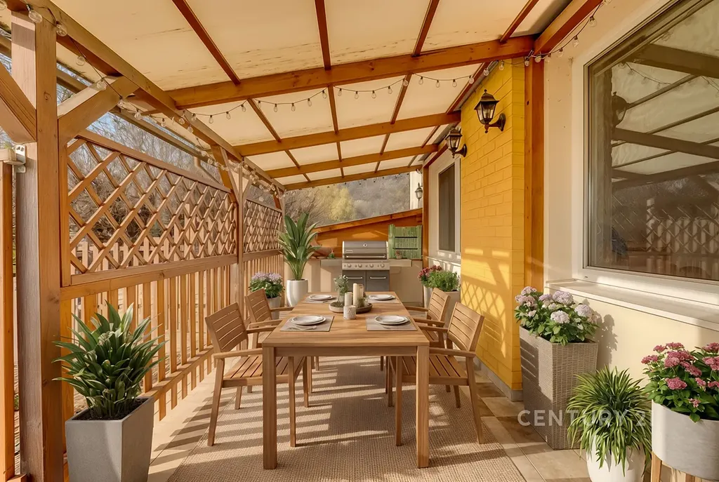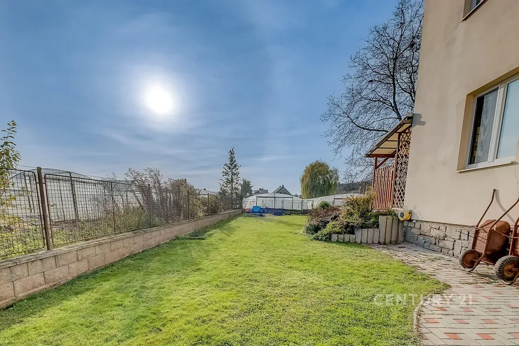K bytu náleží terasa a vlastní zahrada o velikosti 405 m², která poskytuje ideální zázemí pro rodinný život – dětské hraní, bazén, grilování i klidné posezení. Zahrada nabízí dostatek soukromí a zároveň praktické zázemí v podobě samostatného sklepa vhodného pro uskladnění zahradní techniky, kol či sportovního vybavení.