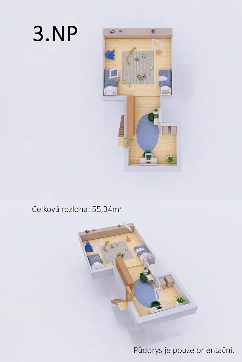 • 1. a 2. patro: obytné pokoje a ložnice s dostatkem prostoru pro rodinné i skupinové využití