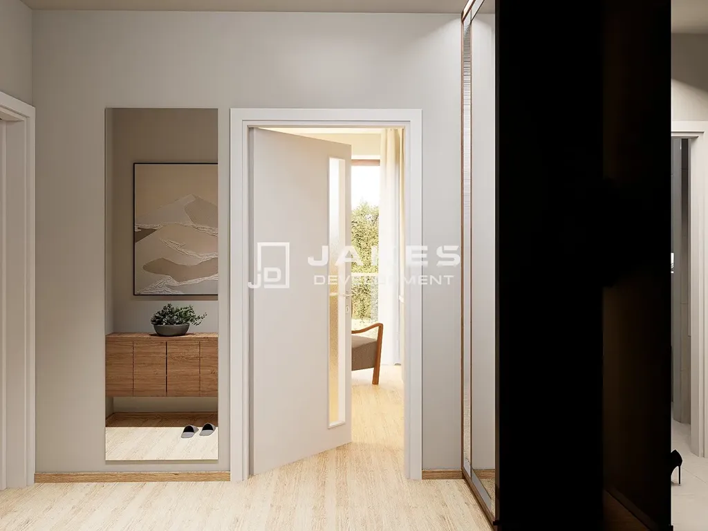 Byt bude dokončen ve vysokém standardu zahrnujícím kvalitní vinylové podlahy, moderní interiérové dveře a elegantní koupelnu s keramickými obklady a sanitou značky Laufen. Vše je navrženo s důrazem na nadčasový design, funkčnost a kvalitu použitých materiálů.