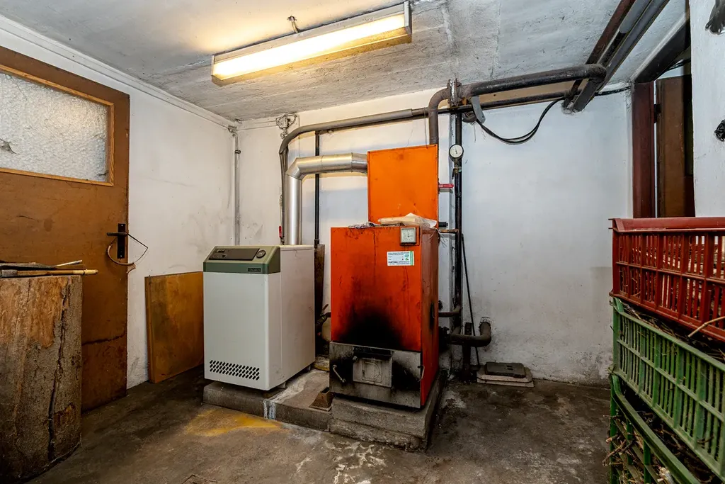 Světlý a prostorný interiér patrového domu o rozloze 280 m2 nabízí dvě na sobě nezávislé bytové jednotky 3+1 v přízemí a 2+1, kde kromě těchto plně hodnotných místností lze vybudovat ještě dvě další. Dům je kompletně podsklepený, což poskytuje dostatek úložného prostoru a umístění pro plynový kotel a kotel na pevná paliva, zajišťující účinné vytápění a ohřev teplé vody. V suterénu je ještě kromě kotelny a místností na potraviny prostorná dílna.