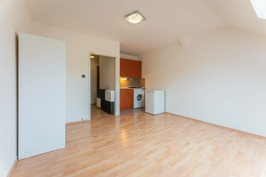 Nabízíme Vám k pronájmu menší byt o velikosti 1kk, 26 m², ve čtvrtém patře zděného domu v ulici Holečkova, Praha 5 - Smíchov. Byt se má obytnou místnost včetně kuchyňského koutu. Je zde lednice, pračka, varná deska. Topení elektrické, ohřev vody bojlerem.
