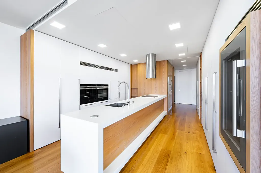 Interiér byl navržen a realizován architektonickým studiem ID_Arch pod vedením Ivany Dombkové a Rostislava Černíka. Výsledkem je elegantní a funkční prostor, který spojuje čistý design, vysoký standard provedení a promyšlené dispoziční řešení s dostatkem úložných míst.