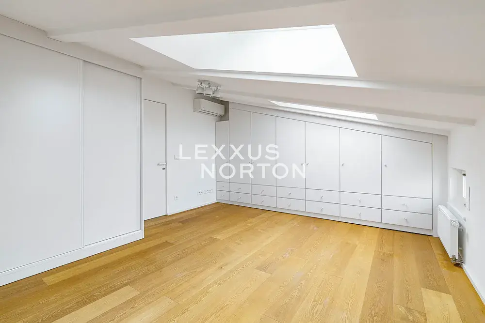 Kuchyňský kout je vybavený sklokeramickou varnou deskou, troubou, lednicí s mrazákem, mikrovlnnou troubou a myčkou nádobí. Koupelna ve spodním patře disponuje vanou a toaletou, v horním patře sprchou a toaletou. Ložnice jsou vybaveny vestavěnými skříněmi. Celý byt i rezidence nabízejí vysoký standard bydlení. V bytě jsou masivní dřevěné podlahy a klimatizační jednotky a v rezidenci je pro nájemce k dispozici soukromé fitness, sauna či uzavřený vnitroblok.