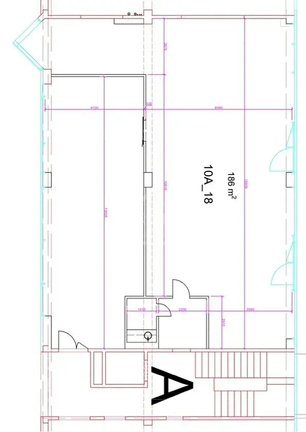 Prostor má 185m², výlohy ze dvou stran (do ulice a do zásobovací uličky zezadu domu), dále má šatnu, toaletu a kuchyňku.