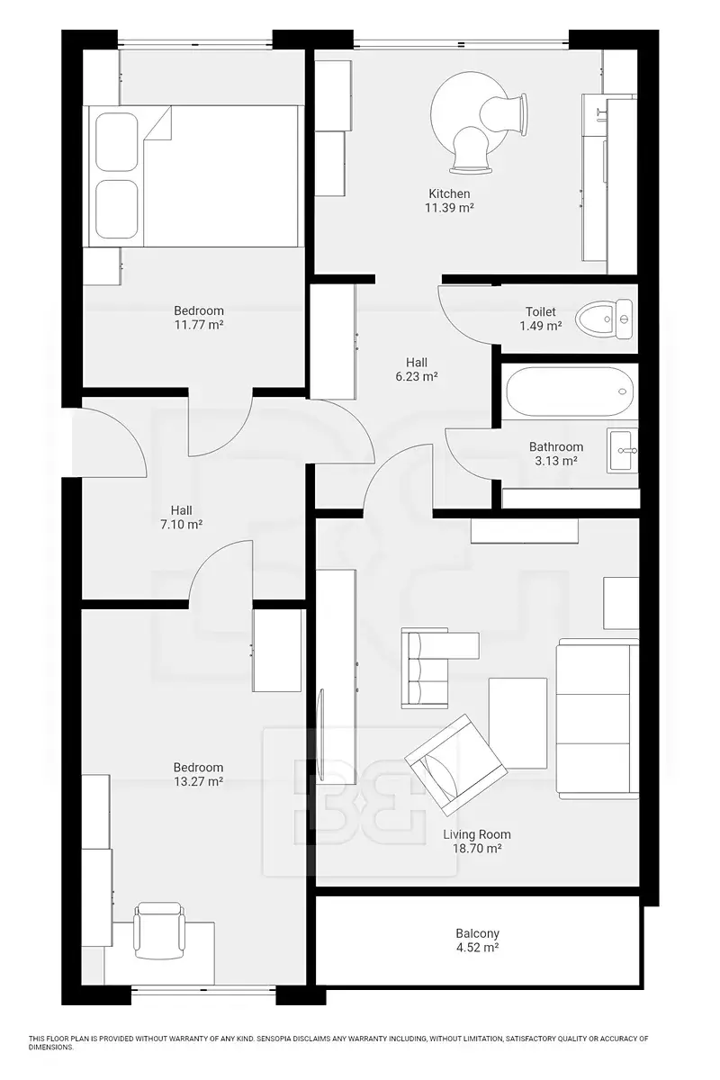 Dispozičně byt nabízí samostatnou kuchyň, obývací pokoj a dvě další obytné místnosti.