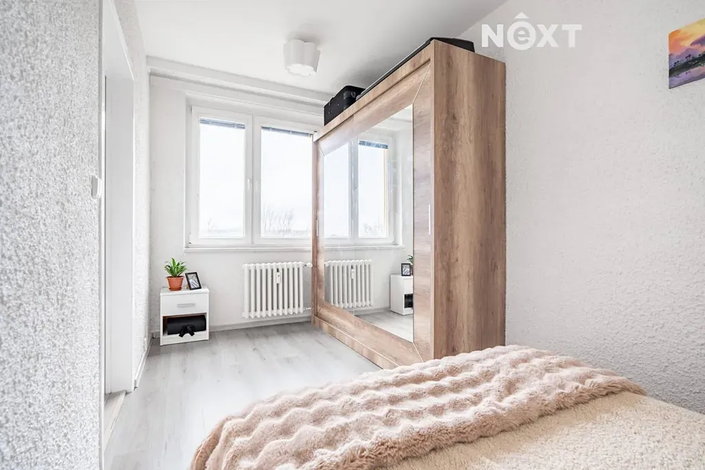 Byt se nachází ve 4. nadzemním podlaží osmipodlažního domu s výtahem. Dispozice je prakticky řešená a nabízí dostatek prostoru pro jednotlivce i pár. Velkou předností je téměř 5 m dlouhá lodžie orientovaná na jih. Součástí bytu je sklepní kóje a nechybí ani praktický úložný prostor na chodbě.