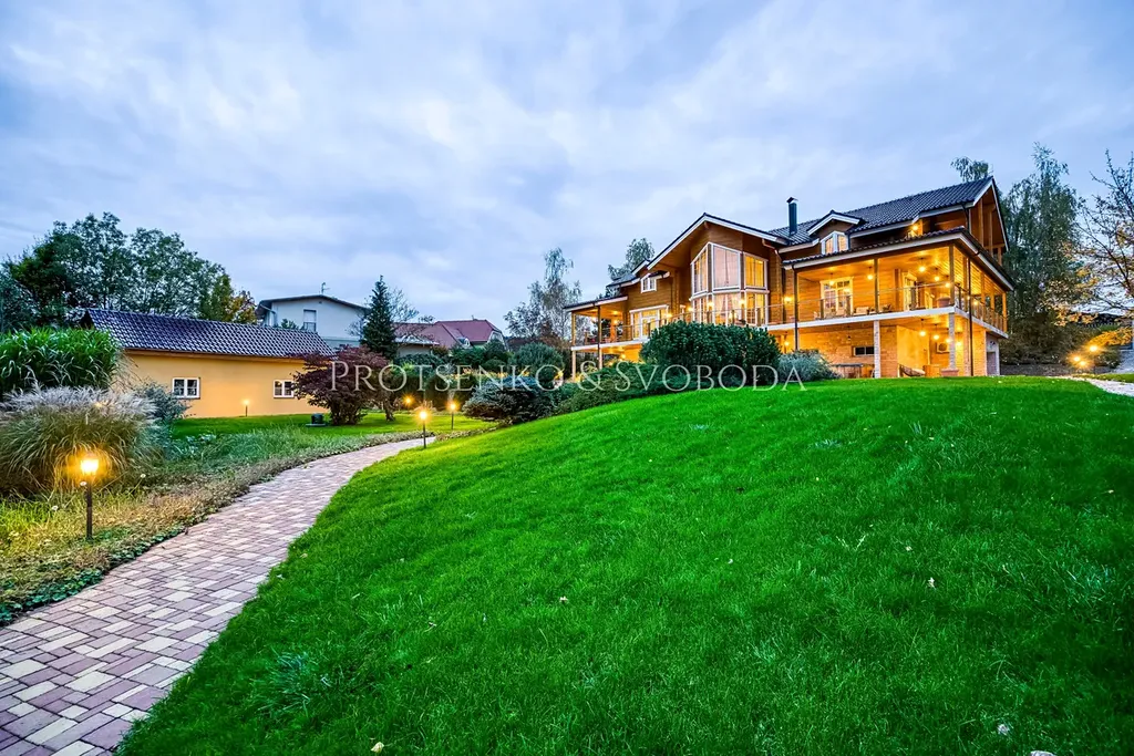 Společnost Protsenko & Svoboda vám v zastoupení majitele nabízí tuto výjimečnou vilu o užitné ploše 750 m², která se rozkládá na pozemku o velikosti 2 400 m² s pečlivě udržovanou zahradou a přístupem k řece. Dům má tři podlaží a je koncipován tak, aby poskytoval maximální soukromí, pohodlí a prostor pro rodinu i hosty.