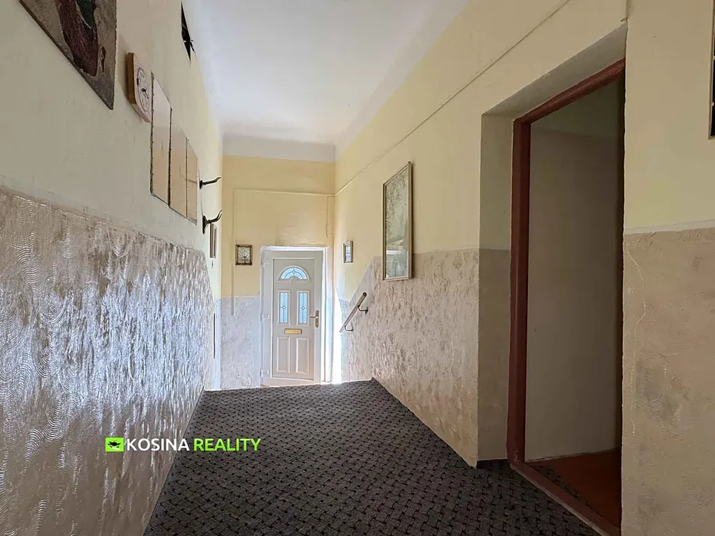 Nabízím k prodeji rodinný dům s možným komerčním prostorem a malou zahradou. Jedná se o rodinný řadový dům na ulici Maxima Gorkého v centru města u městského úřadu. Jeho stáří je cca 100 let a kdysi bylo přízemí využívané ke komerčnímu účelu (Sazka). Nyní je komerční prostor nevyužívaný, samostatný vchod zazděný, majitel měl v plánu tyto prostory předělat na bydlení. V přízemí domu je chodba se vstupem do přízemních bytových prostor s předsíní, dvěma pokoji, kuchyní a koupelnou (73 m2). Z chodby v přízemí vede kameninové schodiště do druhého nadzemního podlaží, kde je předsíň, dva pokoje, kuchyně, koupelna s WC a technická místnost (95 m2). Z předsíně na tomto podlaží vede dřevěné schodiště do obytného podkroví, kde jsou tři pokoje (60 m2) a skladovací prostory (35 m2). Přízemí domu nebylo dlouho využívané, nevětrané a je zde poměrně vlhkost. Vytápění v přízemí není řešené. Druhé nadzemní podlaží bylo užívané, je udržované a vytápěné ústředním topením napojeným na plynový kotel, ohřev teplé užitkové vody je elektrickým bojlerem. Obytné podkroví je delší dobu bez rekonstrukce, vytápění zde není a sociální zařízení také ne. Díky svému velkému prostoru je toto podkroví zajímavé. Dům má většinu plastových oken z pokojů na jižní stranu, proto je dům prosvětlený a teplý. Na severní straně domu je malá zahrada (25 m2) a malý pozemek (31 m2), který je předmětem prodeje.  Dům je celý podsklepený, je napojený na kanalizaci, elektřinu, vodovod a plyn. Průkaz energetické náročnosti budovy nebyl zatím dodán, proto uvádím tří PENB „G“. Pro více informací mě kontaktujte.