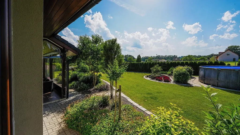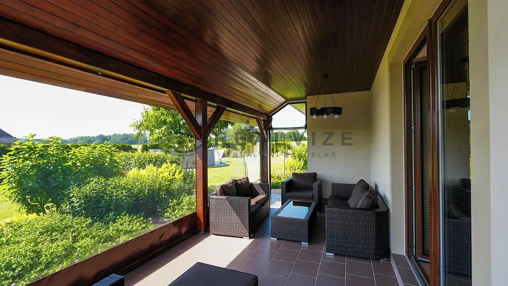 Součástí domu je velká garáž, dostatek parkovacích míst na pozemku a zimní zahrada, která poskytuje skvělý prostor pro relaxaci i v chladnějších měsících. Celý objekt je vybaven podlahovým topením napájeným tepelným čerpadlem a klimatizací pro maximální pohodlí. Díky kvalitním materiálům, ze kterých je dům postaven, je ve vynikajícím stavu.
