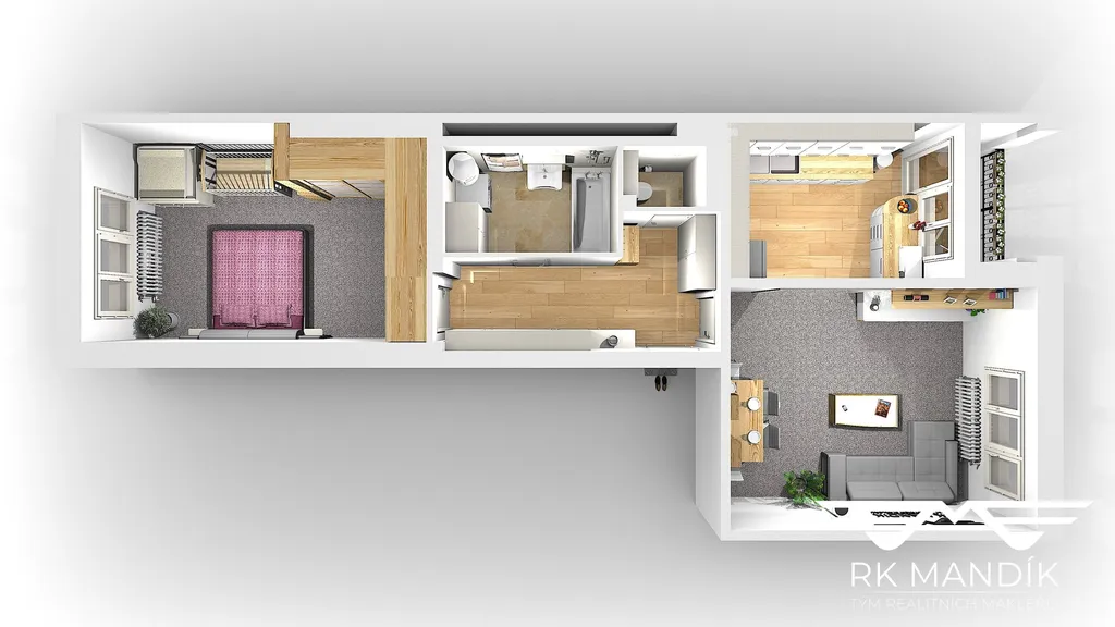 Dispozice a standard: světlé a pečlivě dokončené povrchy po rekonstrukci, kvalitní podlahy, nové rozvody a moderní vybavení. Byt je vhodný pro jednotlivce, páry i menší rodiny, které hledají komfortní městské bydlení s výbornou dostupností.
