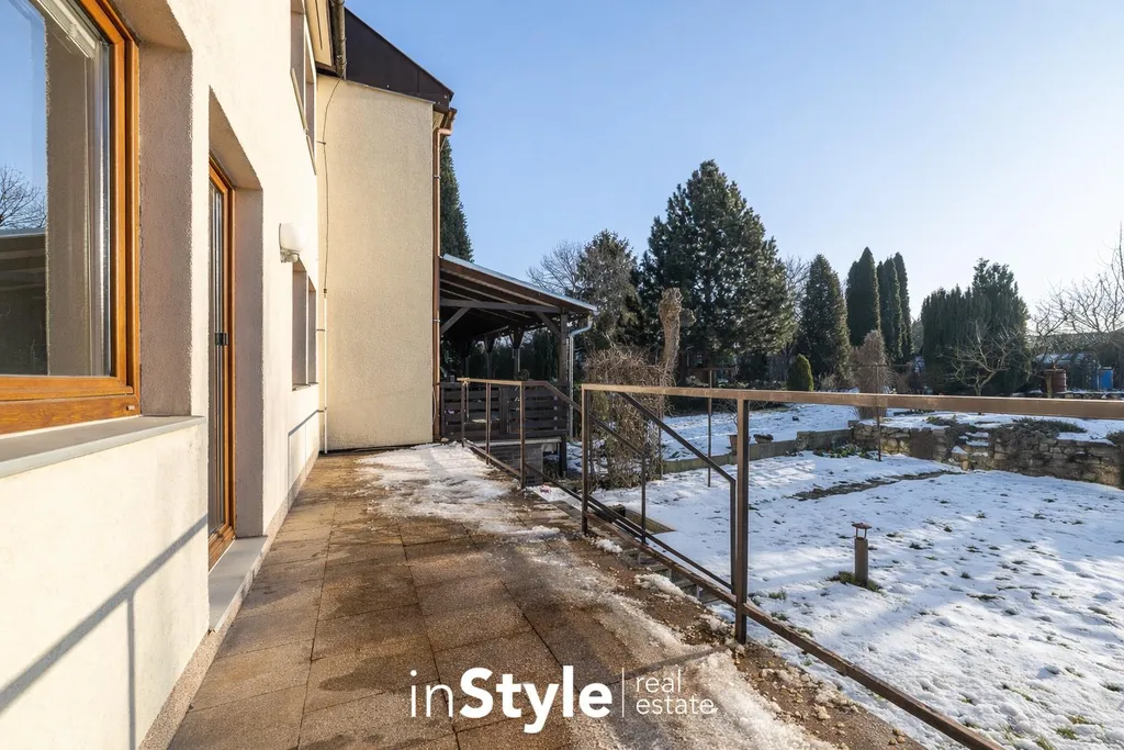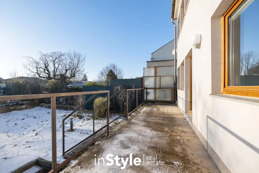 Námi nabízený rodinný dům má jedno podzemní, dvě nadzemní podlaží a nabízí více než velkorysou základní dispozici 6+1, přičemž nad rámec této dispozice budete mít garáž, dvě koupelny a suterén, kde je k dispozici kotelna, prádelna, místnost s posezením a několik skladových prostorů. Nesmírnou výhodu rovněž vidím v přístupu na zahradu, kam se pohodlně dostanete ze suterénu i prvního obytného podlaží a to skrze venkovní terasu. Zahrada má rovinatý charakter a mimo trávníku, ovocných stromů a menší skalky zde najdete i skleník.