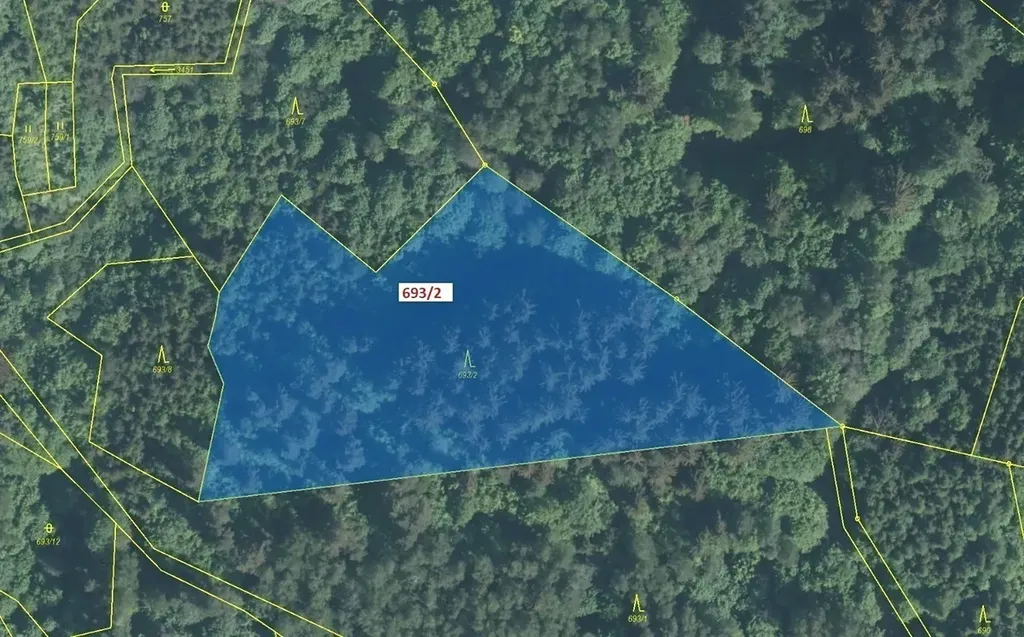 Lesní pozemek o výměře 7364 m2, parcelní číslo 693/2, podíl 1/1, katastrální území Lačnov, obec Lačnov, obec s rozšířenou působností Vsetín, okres Vsetín, Zlínský kraj. Po těžbě.