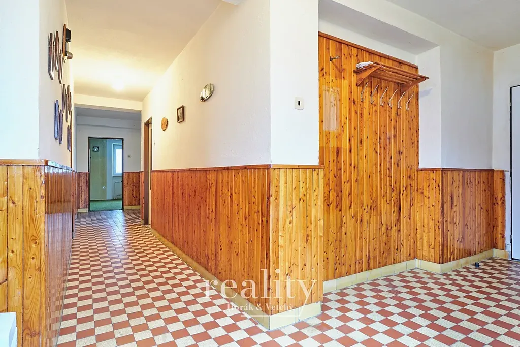 Rodinný dům - jde o dvoupodlažní podsklepený RD z roku 1977 o výměře 209m2, který tvoří hlavní dominantní část. V 1.NP je bytová jednotka o dispozici 3+1, v 2.NP jsou samostatné 2 pokoje + navazující půdní prostor v rámci jednoho podlaží a balkón. Konstrukce jsou smíšené, obvodové zdivo je z plných cihel, stropní konstrukce hurdiskové, v podkroví dřevěné trámové, okna izolační dvojskla. Součástí sklepu je garáž + technické místnosti. Exteriér a konstrukce nemovitosti jsou zachovalé, interiér odpovídá svému stáří, ale nabízí velkorysé bydlení. V přiložené fotogalerii máte možnost se podívat na možné vizualizace budoucího stavu.
