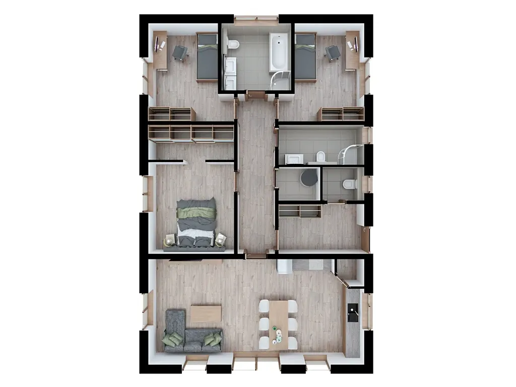 Jednou z hlavních výhod projektu RD Panský je, že se jedná o prodej hrubých staveb. To znamená, že máte jedinečnou příležitost dokončit svůj domov přesně podle svých vlastních představ a potřeb. Tento přístup vám umožní přizpůsobit interiér tak, aby plně odpovídal vašemu vkusu a životnímu stylu, a vytvořit tak bydlení, které bude skutečně vaším vysněným domovem.