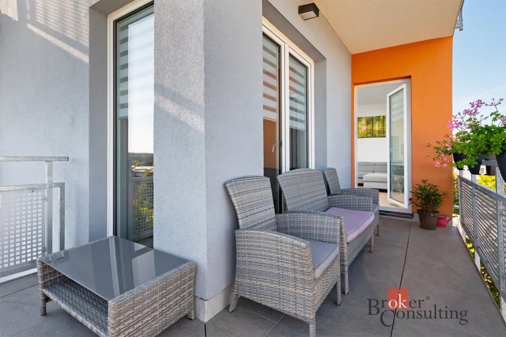 Byt je moderně a velmi vkusně řešen a prodává se částečně vybavený.