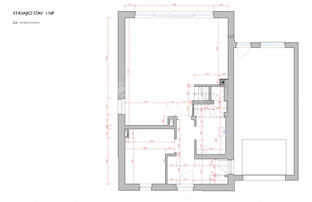 Dispozice: 1. NP- vstupní chodba, prostorný obývací pokoj s kuchyňským koutem a francouzským oknem se vstupem na terasu, pracovna, technická místnost, garáž