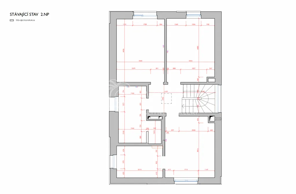 2. NP - vstupní hala, tři ložnice, koupelna s vanou a WC