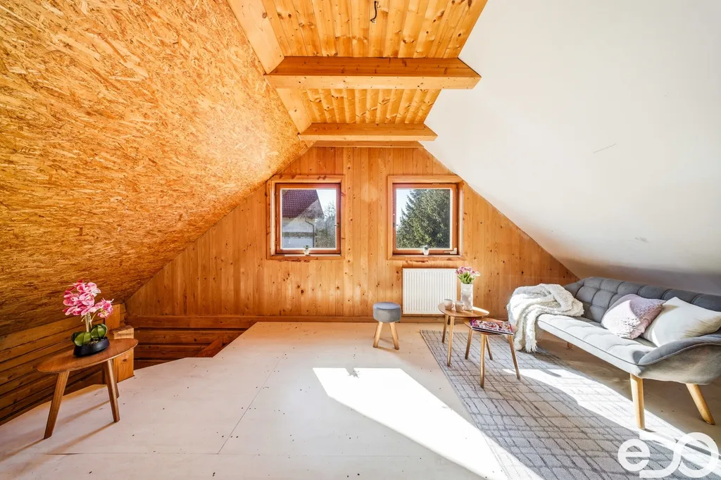 Nemovitost disponuje užitnou plochou přibližně 92 m², přičemž tato výměra je orientační, a je řešena jako rodinný dům s obytným podkrovím. Interiér působí vzdušně a přirozeně díky charakteru dřevostavby a nabízí příjemné zázemí pro každodenní fungování i víkendové pobyty. Součástí domu je bojler zajišťující ohřev vody a technické řešení odpovídající běžnému standardu. Výhodou je také hospodaření s dešťovou vodou, která je svedena do retenční nádrže pro další využití například na zalévání zahrady. Je potřeba počítat s doplněním zdroje vytápění a několika menšími úpravami, což na druhou stranu dává novému majiteli možnost upravit si dům přesně podle vlastních představ a potřeb.