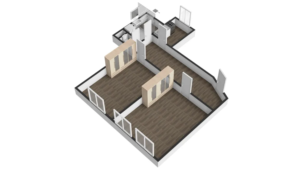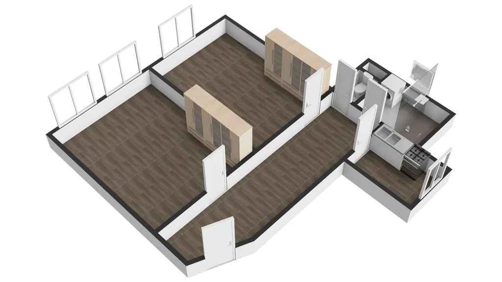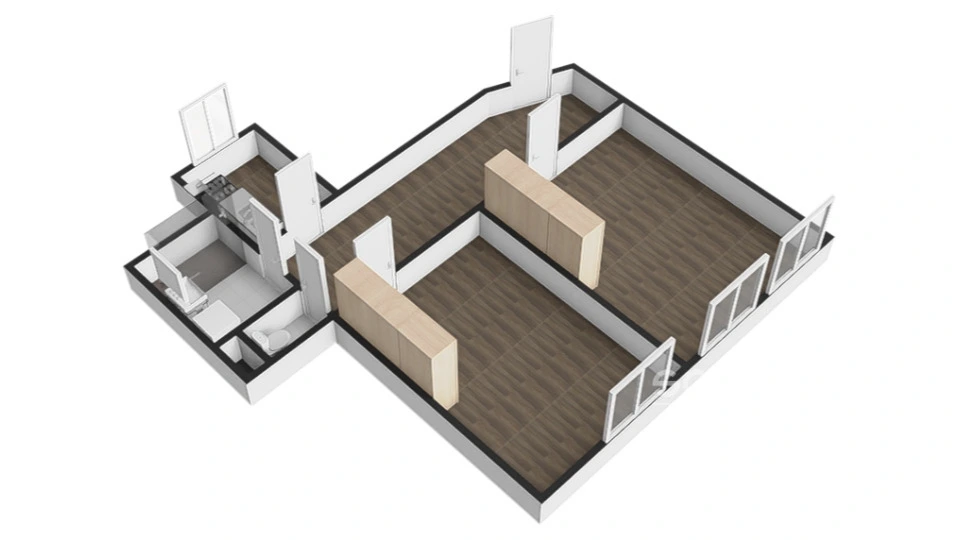 Ze vstupní chodby je přístup do obou neprůchozích pokojů. Kuchyně s kuchyňskou linkou je také samostatná.