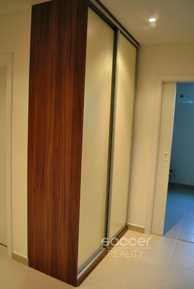 WC je samostatné vybavené s bidetovou sprškou. V předsíni je dostatek úložného prostoru ve vestavěných skříních.
