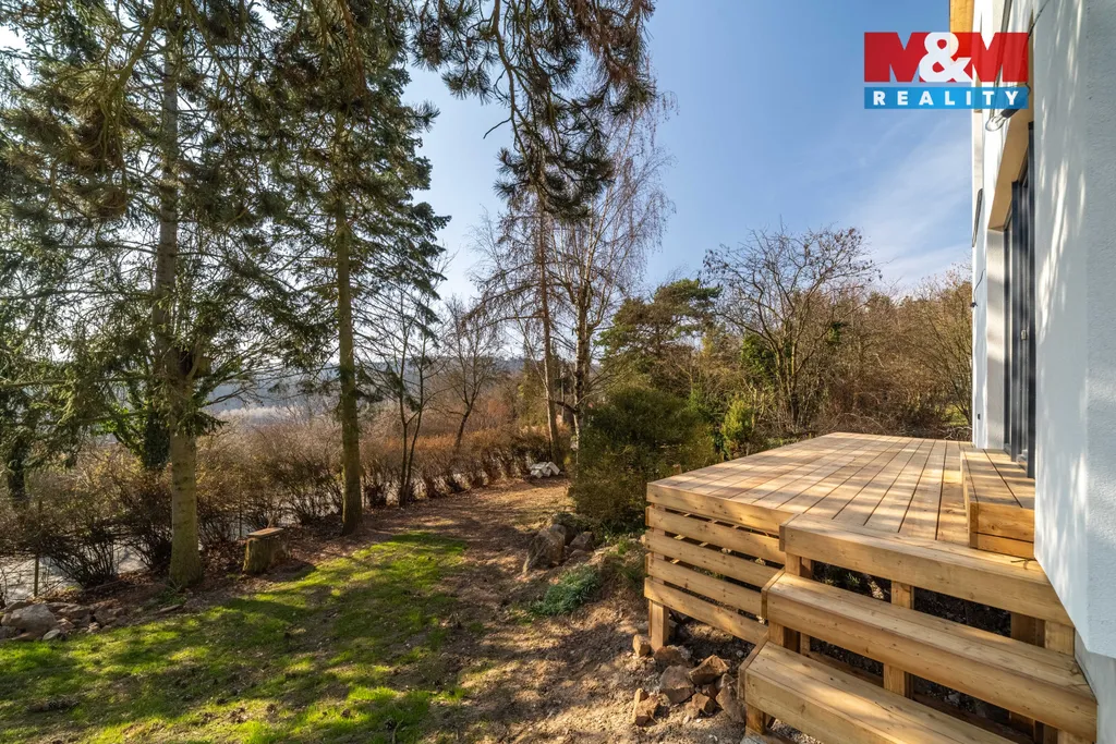 Nabízíme k prodeji zkolaudovanou novostavbu rodinného domu o dispozici 3+kk a o užitné ploše 85 m² v atraktivní lokalitě Zdejcina u Berouna, situovanou na pozemku o výměře 532 m². Nemovitost zaujme především svou polohou nad řekou Berounkou s krásnými výhledy do okolní krajiny a zároveň výbornou dostupností do Prahy (cca 30 minut). V přízemí domu se nachází prostorný obývací pokoj s kuchyňským koutem, koupelna s WC, technická místnost a vstupní část. V patře jsou dva pokoje, ložnice, šatna a druhá koupelna s WC. Dům je vytápěn teplovodním podlahovým topením napojeným na elektrokotel, ohřev vody zajišťuje bojler. Konstrukce je zateplena moderní PUR pěnou, což zajišťuje velmi dobré tepelněizolační vlastnosti. Odpad je řešen septikem, voda je přivedena z nádrže umístěné na pozemku. Klidná lokalita v přírodě s výbornou dostupností do města činí z této nemovitosti ideální bydlení i rekreaci. Ráda Vás uvítám na prohlídce.