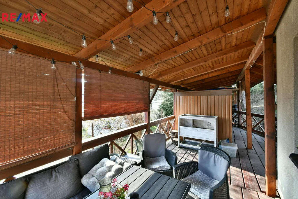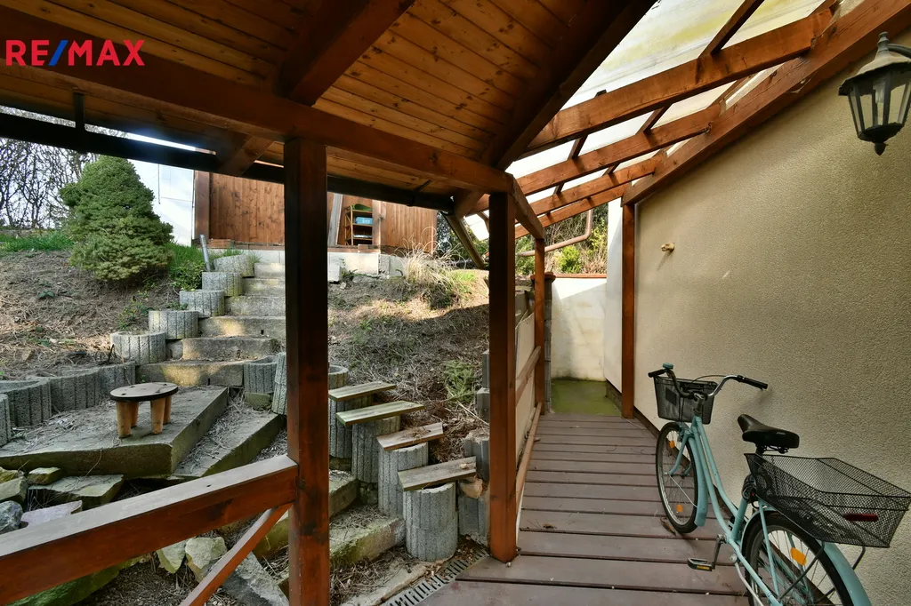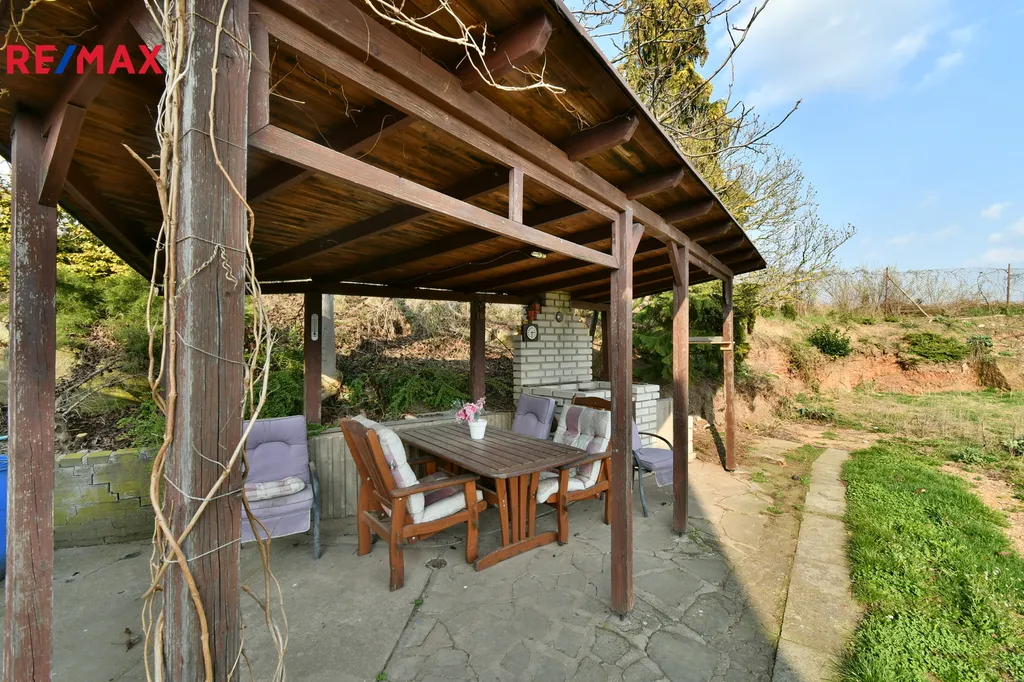 K domu náleží pozemek – zahrada o výměře 415 m², na které se nachází zastřešené posezení ideální pro relaxaci a setkávání s rodinou či přáteli. Z pozemku vede také samostatný vstup do sklepa a přízemního bytu.