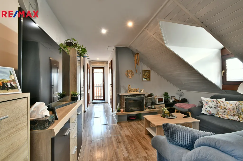 Nemovitost je prodávána s věcným břemenem užívání, které se vztahuje na přízemní byt 2+kk o výměře 62m2 a sklepní prostory 57m2. Dvoupatrový samostatný byt 4+kk s vlastním samostatným vstupem o výměře 67m2 bude novému majiteli plně k dispozici a nabízí komfortní příjemné bydlení