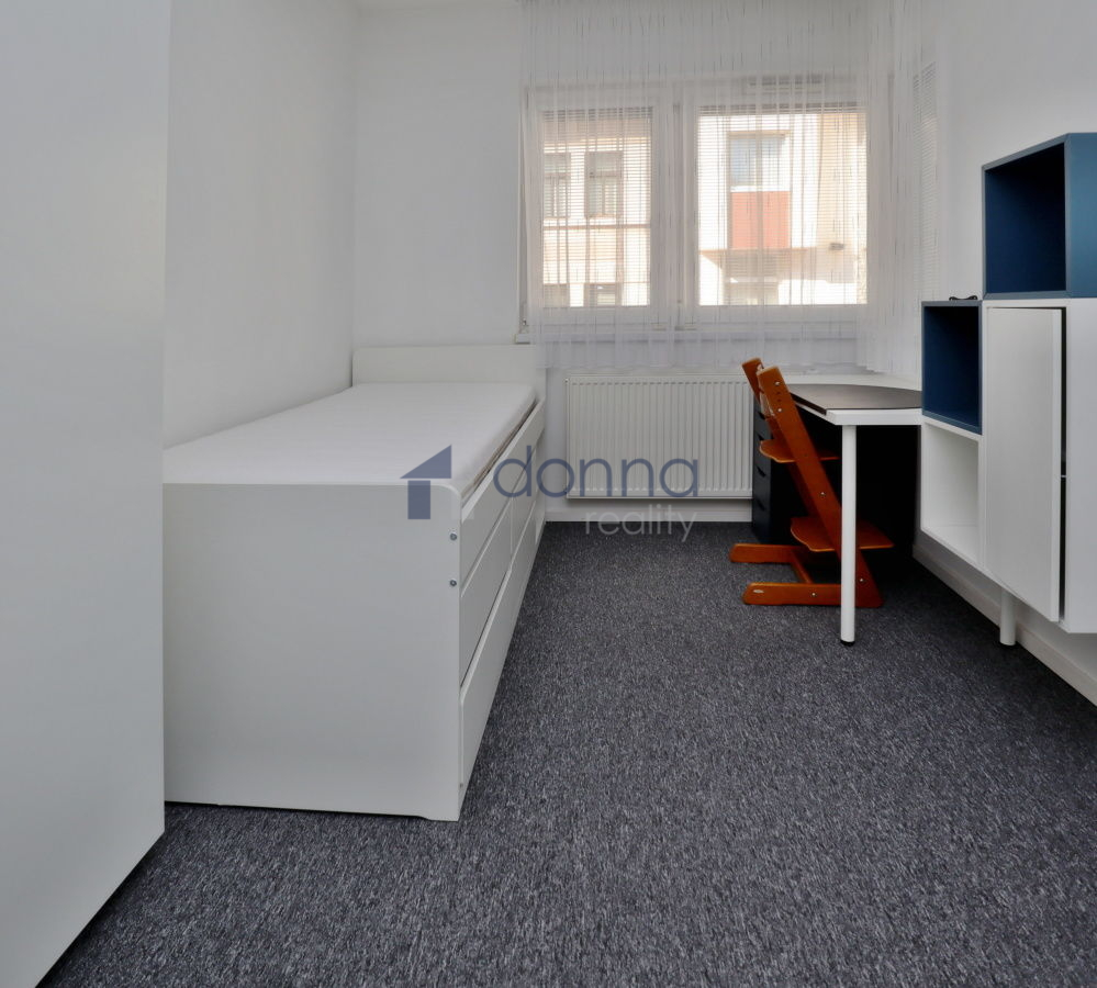 Nabízíme k dlouhodobému pronájmu moderní zařízený byt 4+kk, o ploše 99m2 se zahradou 84m2, ve zvýšeném přízemí cihlového domu s výtahem, ulice Ke Stírce, Praha 8 - Kobylisy.