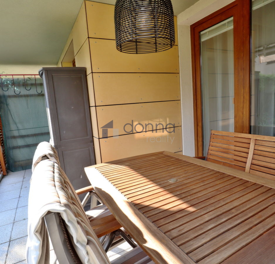 Z obývacího pokoje vstoupíte přímo na zahradu (84 m²) s terasou a markýzou.