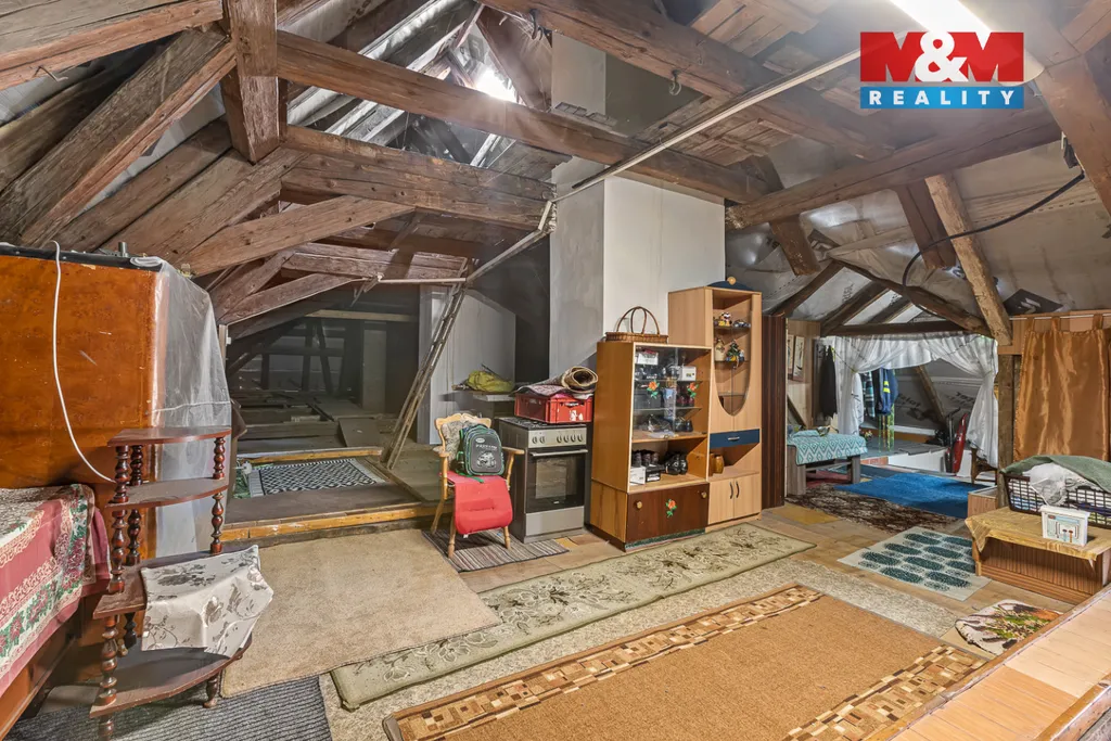 Na půdu vystoupáme po pohodlném schodišti a ta nás pak překvapí také svou velikostí a výškou. Pokud byste případně chtěli obytnou plochu i tady, pak je tu spousta možností.