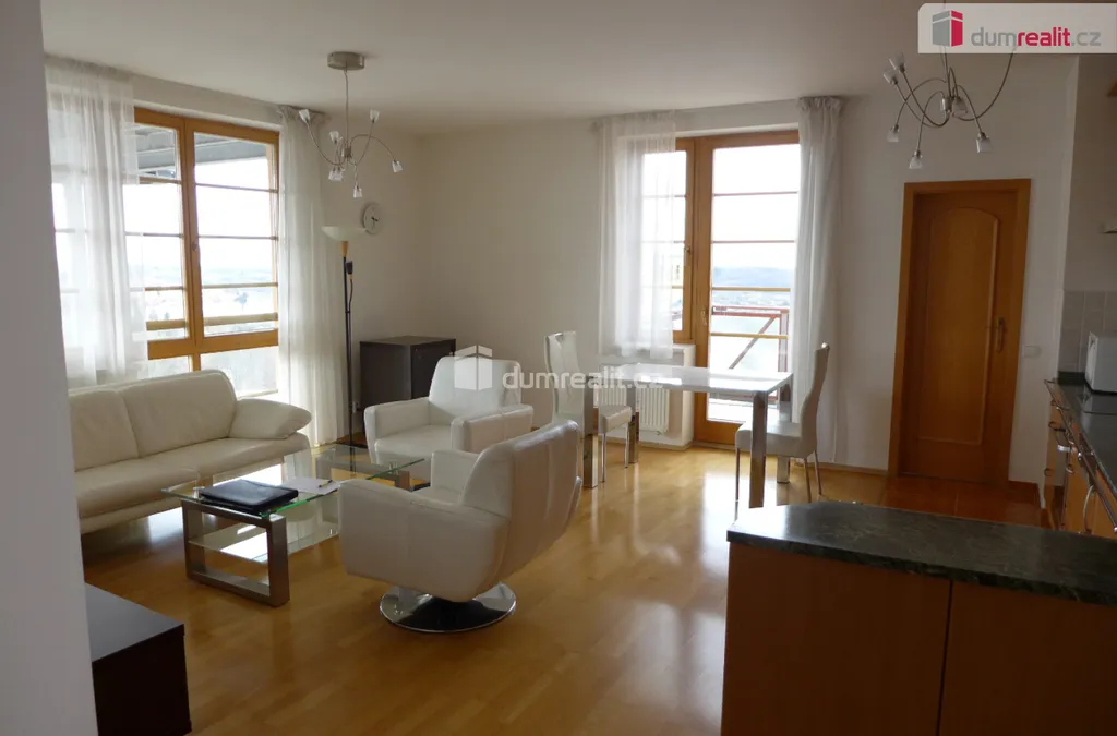 Dominantou bytu je krásně prosvětlený vzdušný obývací pokoj 30,4 m² zařízený kvalitním nábytkem, s francouzským oknem a vstupem na terasu. Součástí místnosti je i kuchyňská linka plně vybavená kvalitními spotřebiči. Ložnice 16,8 m² je též velmi prostorná a světlá, v koupelně 7,5 m² s oknem naleznete velkou vanu i sprchový kout, zvlášť je WC s umyvadlem. V hale o rozloze 14,4 m² jsou umístěné vestavné skříně a další úložný nebo pracovní prostor nabízí velká komora s oknem o rozloze 3,8 m². Celý interiér bytu včetně vybavení obývacího pokoje je krásně sladěný a působí velice příjemně. V suterénu domu je umístěna dobře zabezpečená sklepní kóje 2 m² a garážové stání v podzemní garáži. Další gar. stání v objektu je možné pronajmout. K dispozici obyvatelům domu s 24 hodinovou recepcí je i posilovna.