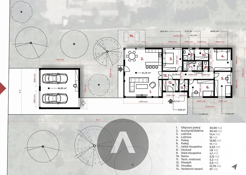 Pokud hledáte pozemek, který je situován v naprostém klidu, takřka přilehlý Brněnské přehradě, ale zároveň ve staré zástavě, pravděpodobně jste našli svůj nový domov. Na tento pozemek je vydáno platné stavební povolení a postavíme na něm pro Vás moderní rodinný dům o dispozici 5+kk, s podlahovou plochou vnitřních prostor cca 160 m2, samostatnou garáží pro dva automobily o ploše necelých 50 m2 a cca 40 m2 terasou.