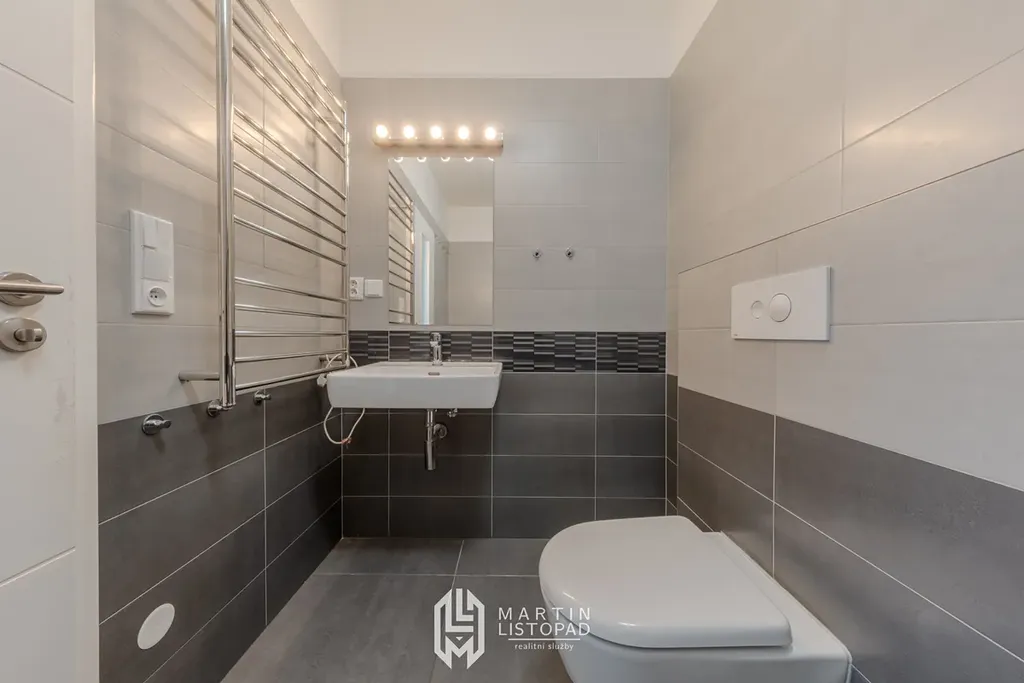 Koupelna je vybavena vanou a je společná s WC. Ve vstupní části bytu se nachází praktický šatník poskytující dostatek úložného prostoru.