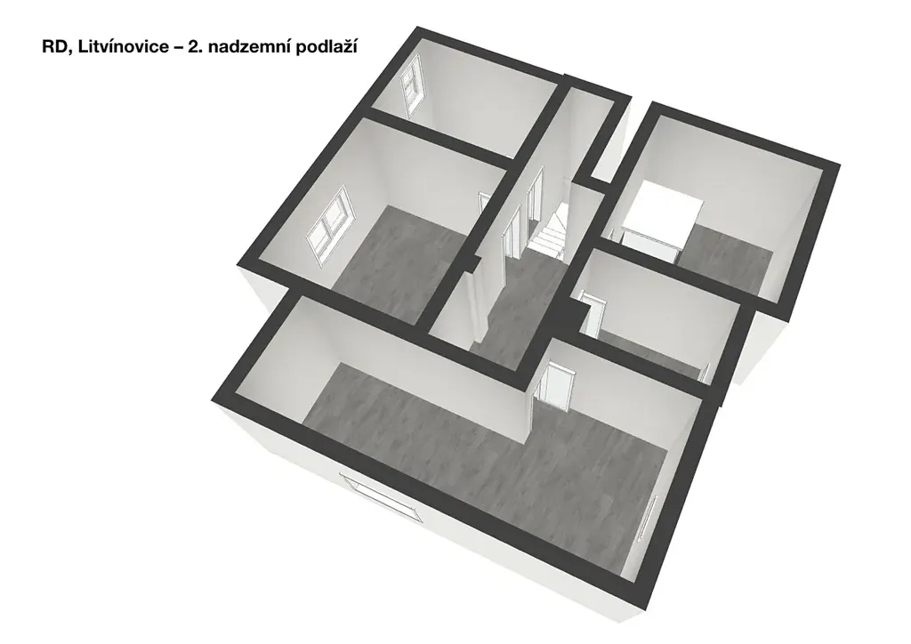 Podkroví je možné ihned obývat, např. po dobu rekonstrukce spodní části domu. Podrobnější informace o současné dispozici jednotlivých pater a velikosti místností naleznete v přiložených půdorysech ve variantě 2D a 3D.