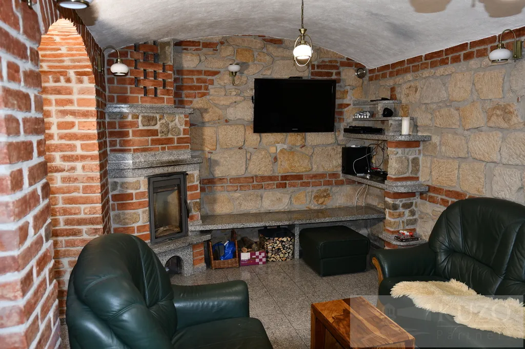 Kromě toho je přítomen krb na dřevo, který přispívá k útulnosti a příjemnému pocitu domova ve kterém je možno topit, což ve spojení s interiérem dotváří jedinečnou atmosféru.